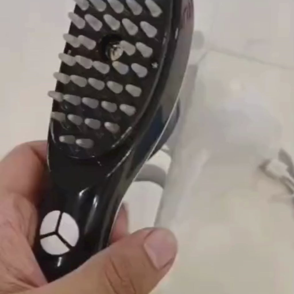 Vibration provides even stimulation across the scalp. Motor → creates vibration → delivers gentle massage through comb teeth. This function supports relaxation during use and improves the overall experience of brushing.